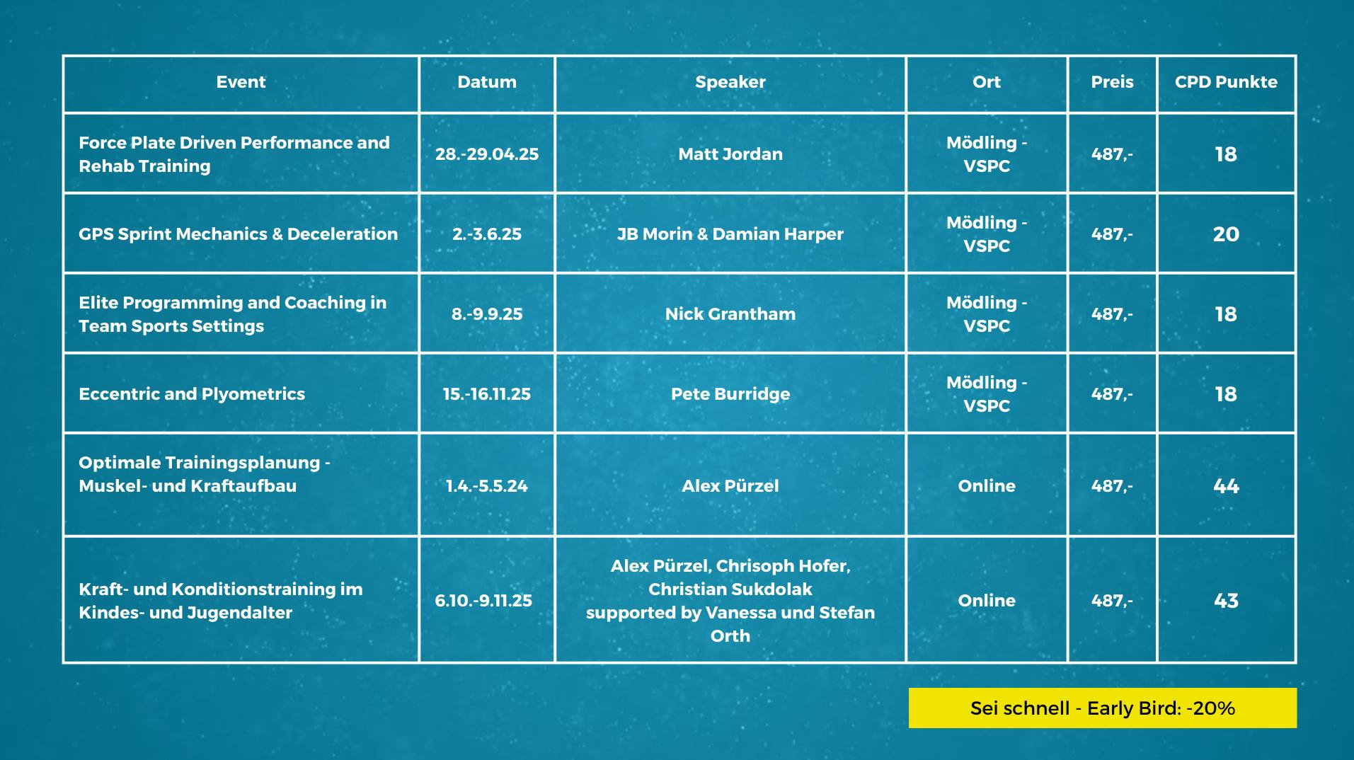 Die EINS-A Coaching OG (Educational Institute for Sports – Austria) hat es sich zum Ziel gesetzt Strength & Conditioning Coaches ein Fortbildungsangebot auf höchstem Niveau zu bieten!