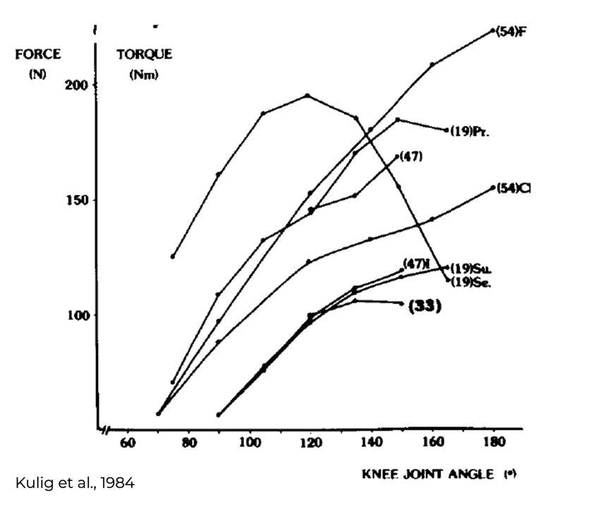 - Mit zunehmender Kniebeugung nimmt die Kraftfähigkeit deutlich ab